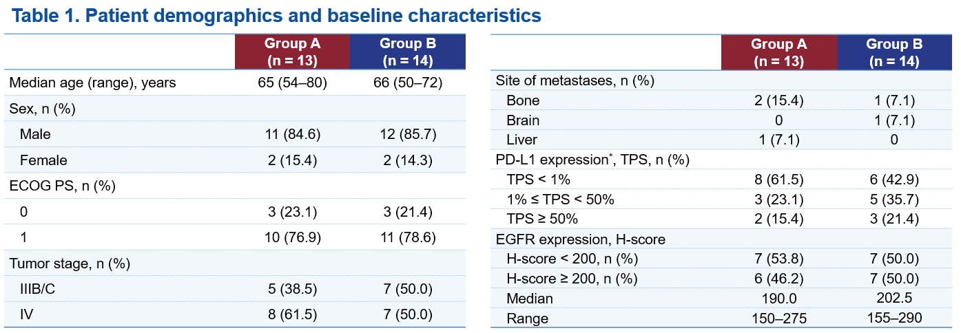 HLX10HLX07-sqNSCLC-201研究是一項隨機、多中心的II期劑量探索研究,包括4個部分,評估了HLX07(不同劑量)、斯魯利單抗和化療的多種組合。第3部分評估了三藥組合的初步有效性,EGFR高表達(H評分≥150)且無既往系統治療的患者被1:1隨機分至兩組,分別接受靜脈注射HLX07 800 mg或1000 mg,聯合斯魯利單抗和化療。