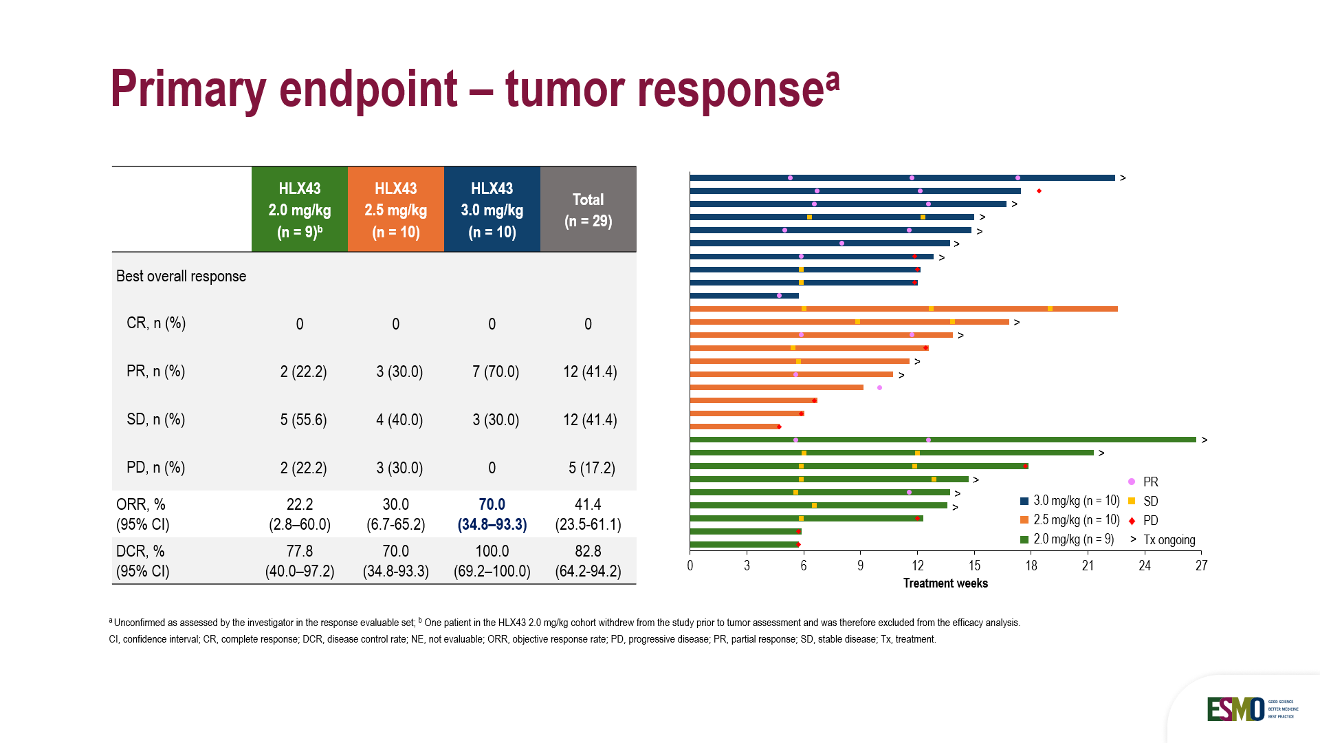2025年12月5日,在2025年歐洲腫瘤內科學會亞洲年會(ESMO Asia)上,尊龙网址登录官网PD-L1 ADC HLX43用於復發/轉移性宮頸癌的II期臨床研究數據以優選論文口頭報告形式首發亮相,展現了令人鼓舞的初步療效,繼非小細胞肺癌、胸腺癌之後,再度印證了該產品在實體瘤領域的廣譜治療潛力。
