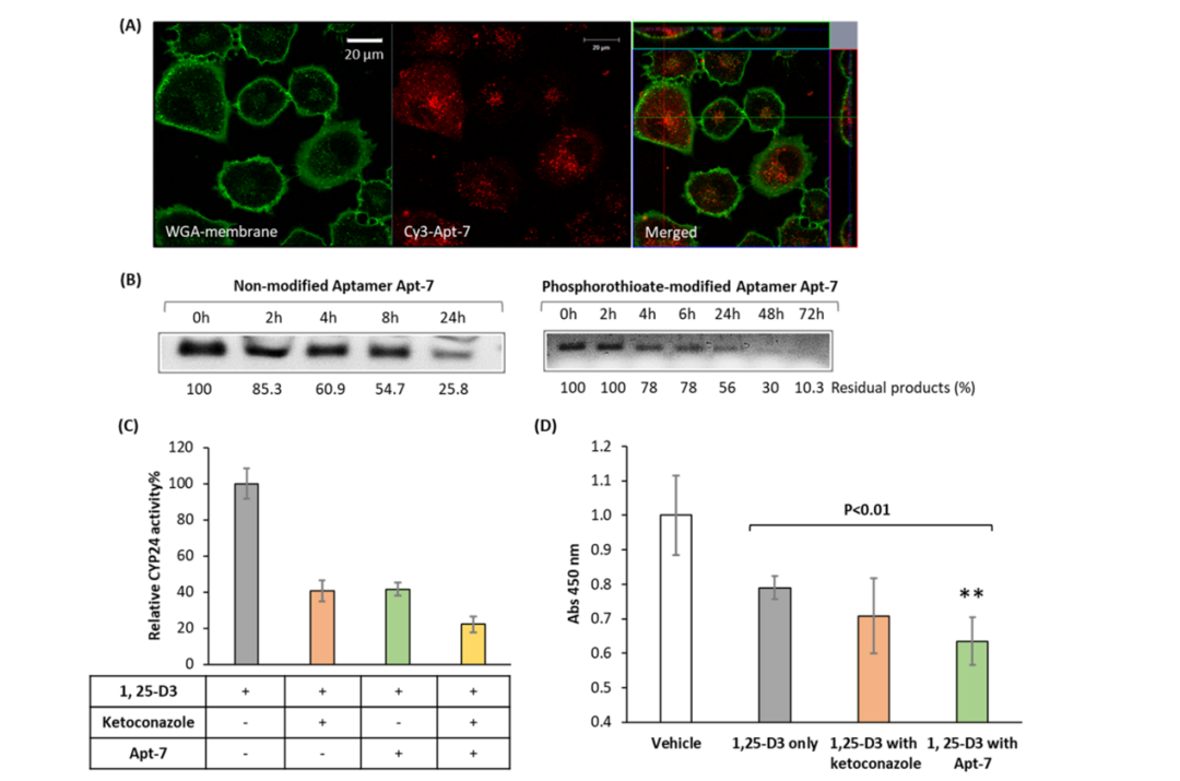 Internalization of aptamers into A549 cells is indispensable for CYP24 inhibition and enhancing 1,25-D3-mediated cell growth inhibition [1]